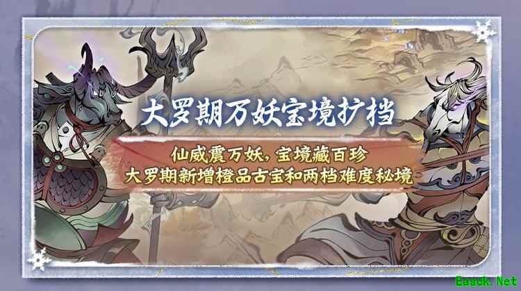 大罗期新增两档难度万妖宝境秘境,玩家前往挑战秘境首领,有机会获取大罗期橙品新古宝。
