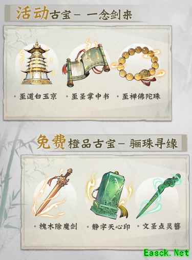 联动限定古宝上线,参与韶华剑礼等活动,可免费获取橙品古宝套“骊珠寻缘”,集齐可提高玩家神通伤害,增强自身实力。