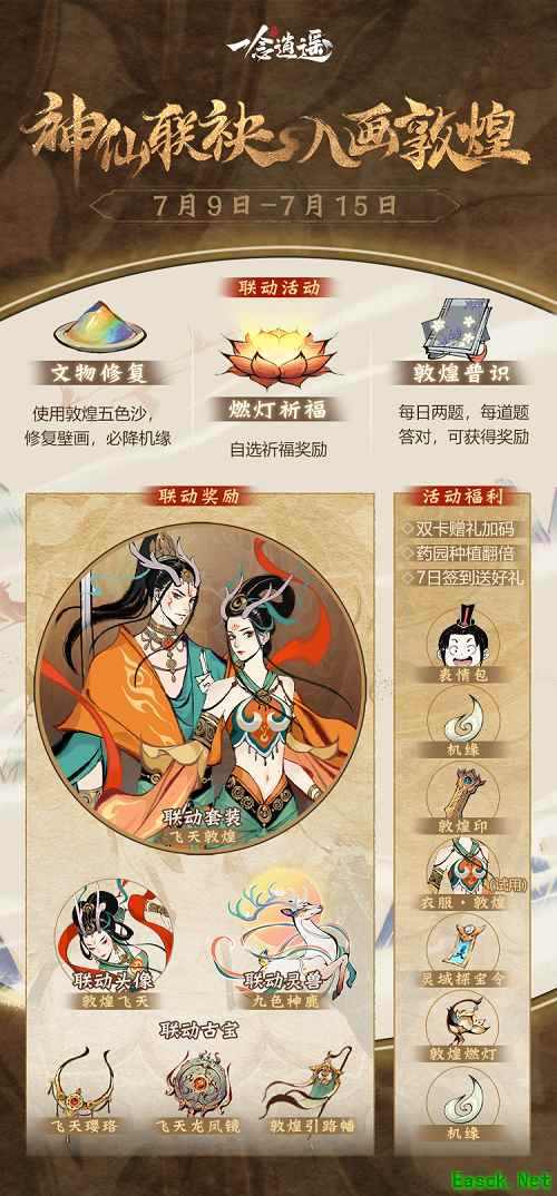 今天敦煌联动活动正式上线,如果你也想成为身着敦煌仙裳,身边有九色神鹿,手持敦煌古宝的仙人,可得记得参加敦煌限时专题活动“文物修复”、“敦煌普识”以及“燃灯祈福”,不仅可以获得丰富的游戏奖励,还能从中了解敦煌文化。燃起文化传承之火。