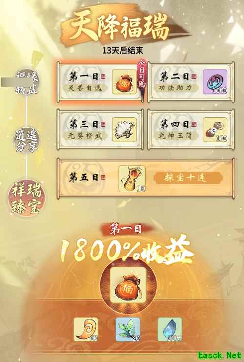 天降福瑞活动也将在新大区的新位面限时开放,届时将有福缘转盘、逍遥分享、祥瑞臻宝三重福利助玩家们轻松修炼,参与活动有机会获得探宝十连、上古玉简、丰厚机缘及超高收益礼包。