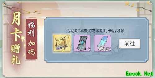 活动期间,仙友充值或续期月卡,可获赐福令、天机令等额外奖励。活动开始前一周内购买/续期月卡的仙友,亦可享受该福利。