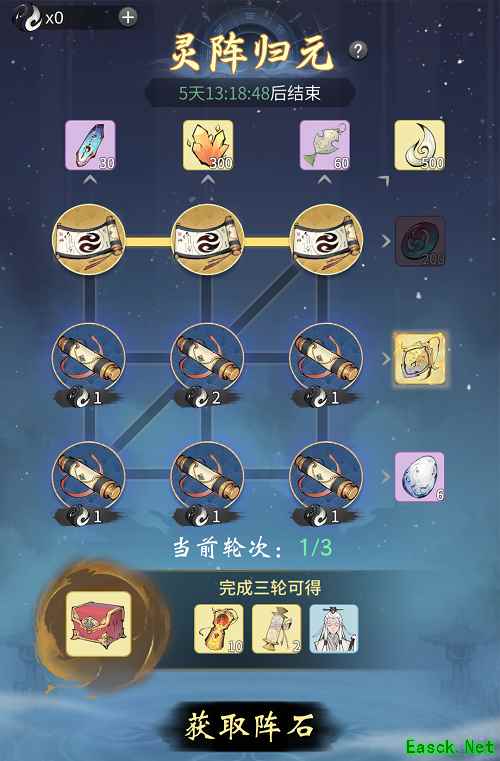 8月26日8-9月5日,修复灵阵,万象归元——“灵阵归元”限时福利活动开启。活动期间完成指定任务,即可获得活动道具“罗天阵石”,消耗阵石修复灵阵阵眼可立即获得修复奖励,每修复完成一条直线阵眼,可领取更高档次奖励。