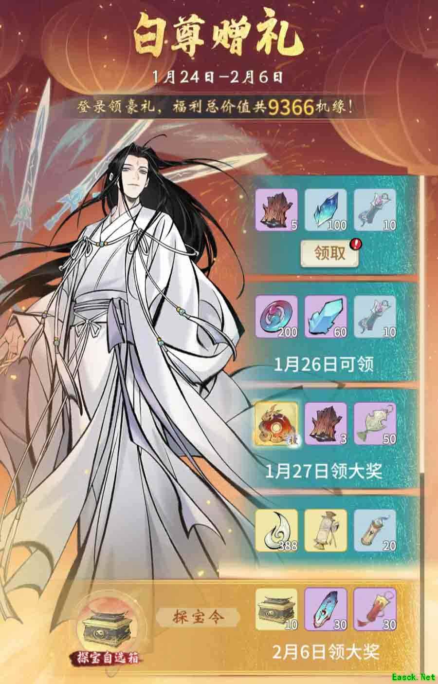 活动今日开启,持续至2月6日,活动期间指定日期登录,可领橙品古宝等馈赠。