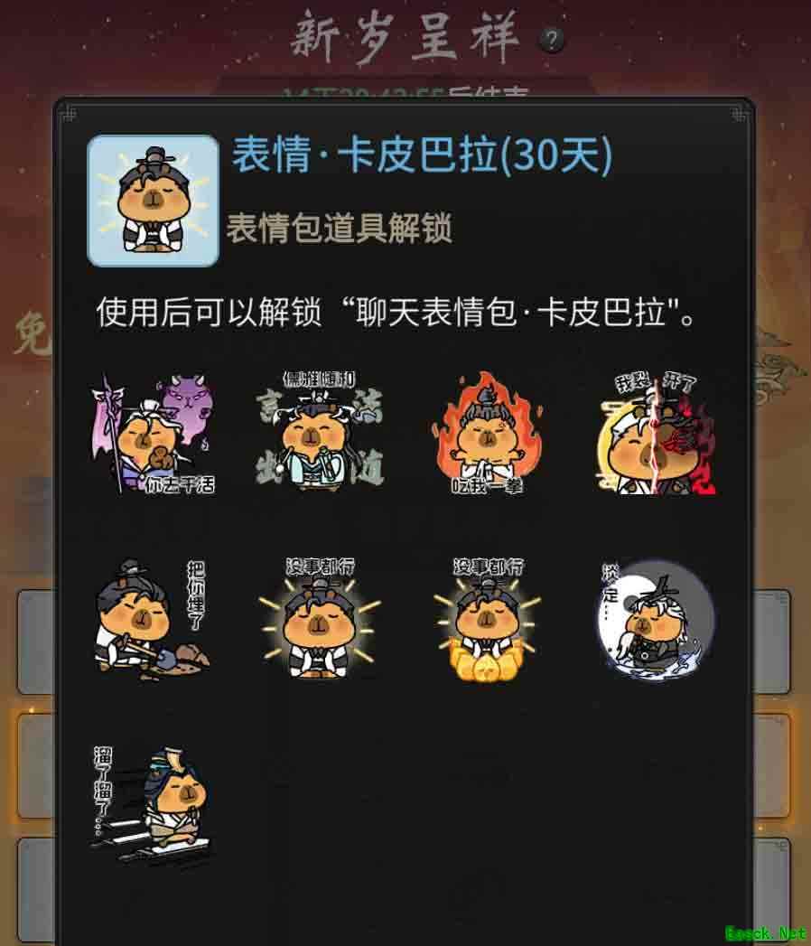 1月27日~2月12日期间登录,即可免费激活,每日完成任务,免费领取3600机缘与卡皮巴拉小黄豚限定表情包。