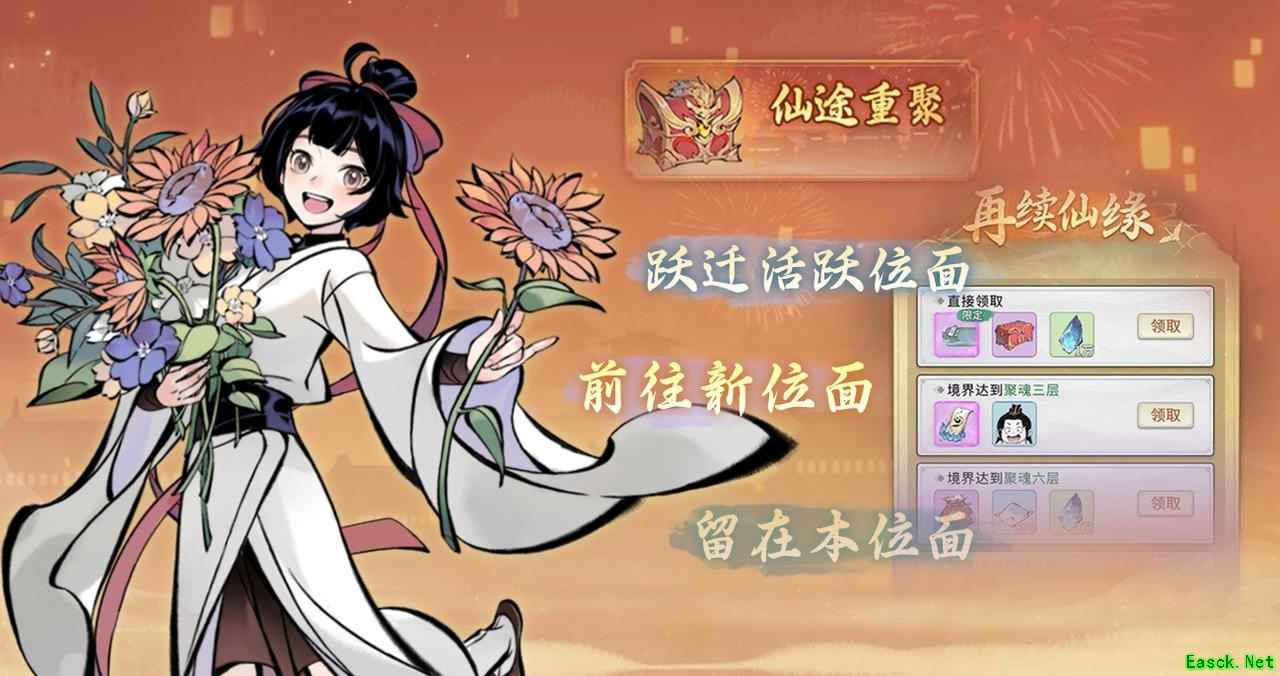 周年庆当天,芸娘为大家准备了一封带有过年礼的信件,内含橙品头像、紫品头像框等奖励,玩家前往城镇即可领取;若玩家已经飞升,可前往百晓生处领取赠礼。除夕、春节、周年庆当天还有大量红包雨随机掉落,愿仙友享受庆典欢愉,满载而归。