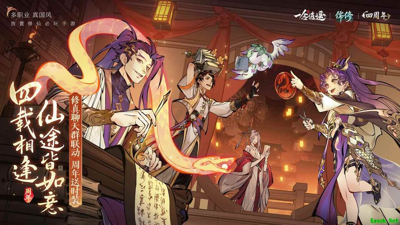 《一念逍遥》新修炼方向儒修今日上线,周年福利大区【儒道浩然】同步开启,更有四周年特别联动《修真聊天群》免费送紫品时装!一年一次周年相聚,老玩家回归福利更多!