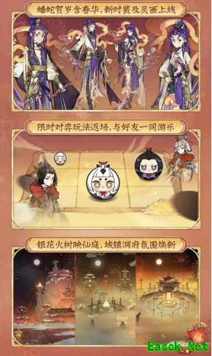 蟠蛇迎新春,共贺四周年,春节版本将于2025年1月27日开启,1月24日即可领取春节登录福利,免费获橙品古宝和大量机缘!本次春节版本福利加码,全服密令送造化图,免费体验绝版幻化,芸娘寄语送相框,春节周年都有红包雨!参与春节活动【腾蛇佑九州】,可获取蛇年主题限定时装,古宝,和首个双形态联动幻化·白前辈,更有双人对弈趣味玩法和洞府烟花秀返场!