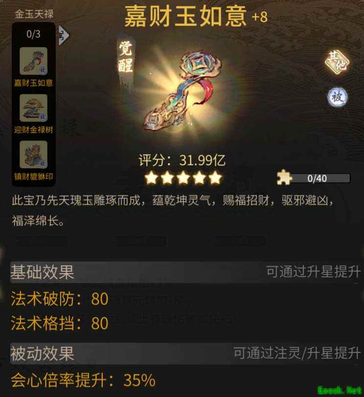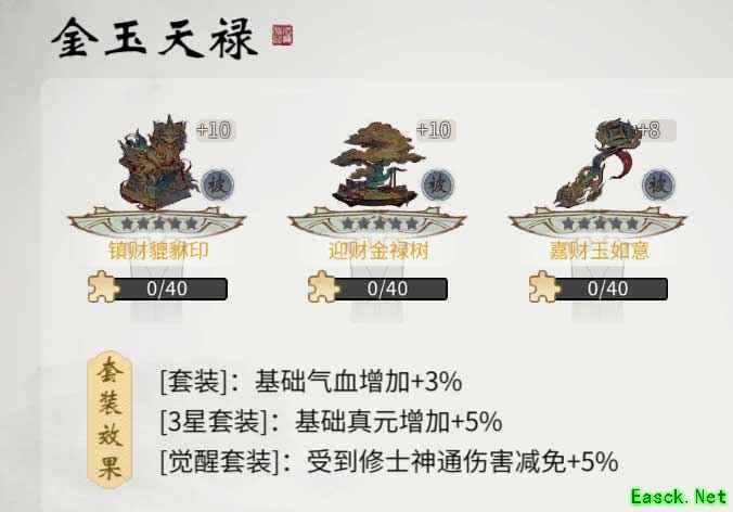 护道佑主,招财赐福,参与签到、拼图等活动,可获取古宝套装“金玉天禄”。集齐并升星古宝套装,能提升修士气血、真元等属性,修行之路更加顺畅。
