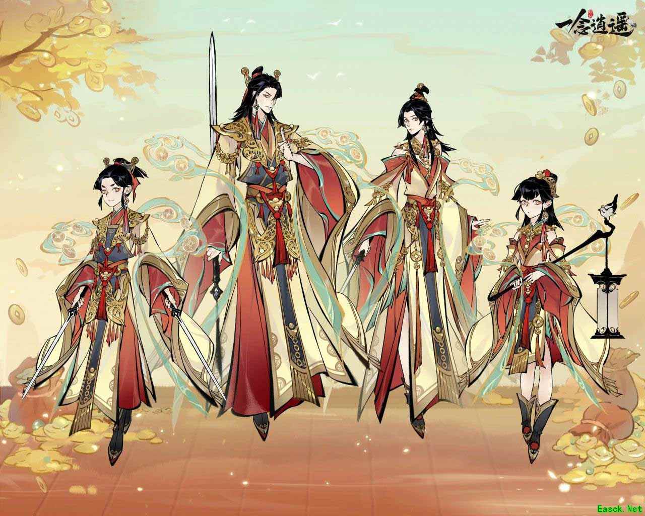 新时装及灵画“金玉满堂”登场,铜钱如雨,元宝连珠,象征招财揽福,源源不绝;开启时装福袋或累计宝盘抽取次数,有机会获取该时装。