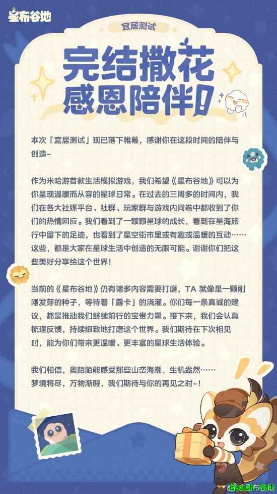 今日,米哈游新作《星布谷地》“宜居测试”已于今早10点整关服。