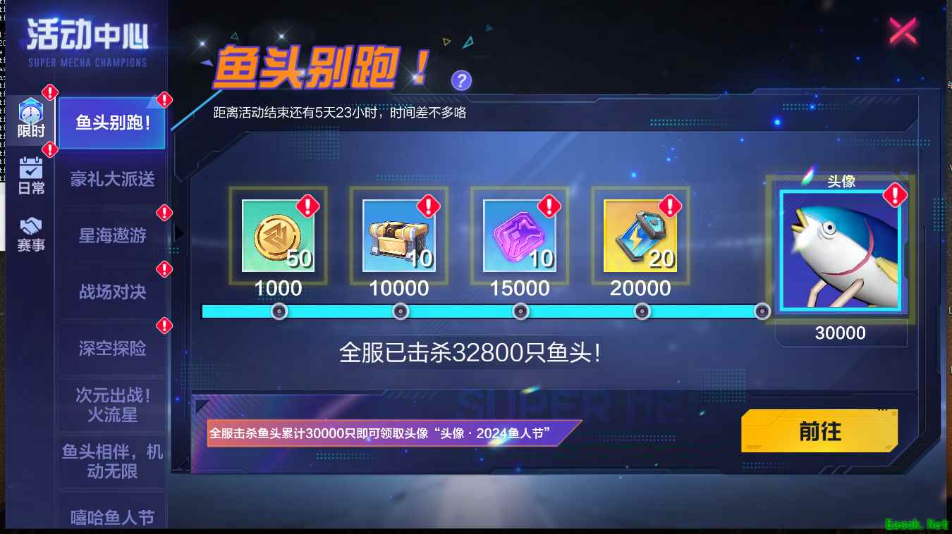 4月1日至4月8日,鱼人节专属敌人“鱼头”将会随机出现在次元战场的关卡中,全服击败“鱼头”达到指定数量,即可领取“头像·2024鱼人节”等奖励!