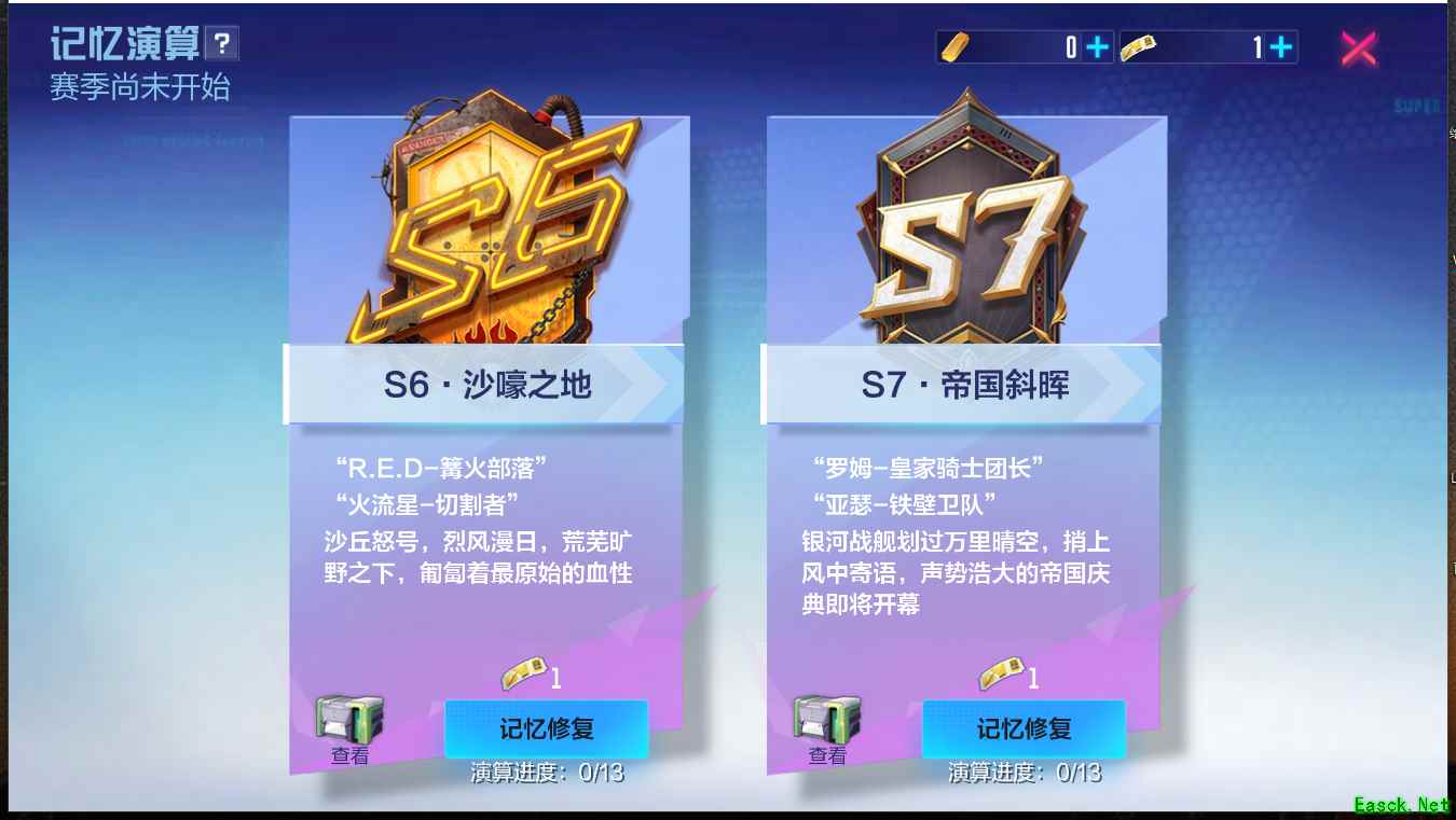 随着S16赛季的到来,记忆演算系统中亦更新限时开放S6,S7赛季!
