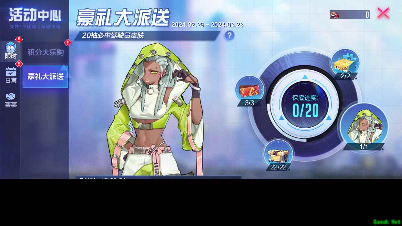 2月29日至3月28日驾驶员R.E.D限时特惠,完成每日随机任务获得抽奖券,至多20抽可得驾驶员R.E.D A级外观“生命旋律”!