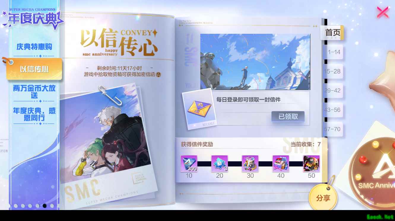 a.以信传心:在对局中拾取“信件”后,可以在活动界面解密读取“信件”内容,达到指定拾取数量可以领取对应奖励!
