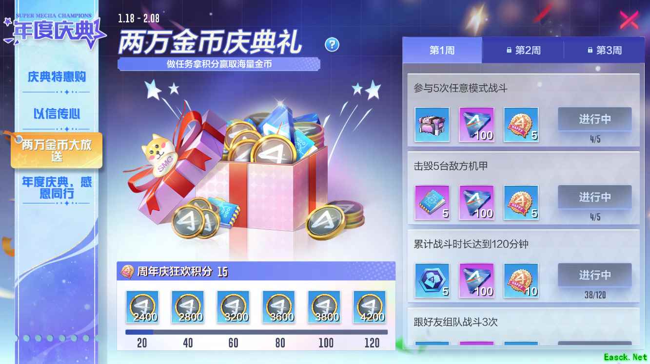 b.两万金币大放送:每周完成任务,收集“活跃度积分”,共两万金币等你来拿!
