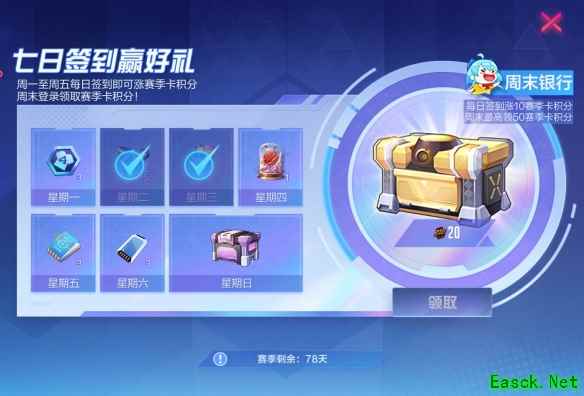 周末活动再次开启,每日打卡即可领取常规签到奖励,同时每次存入赛季卡积分奖励,周末最高能领取50赛季卡积分!
