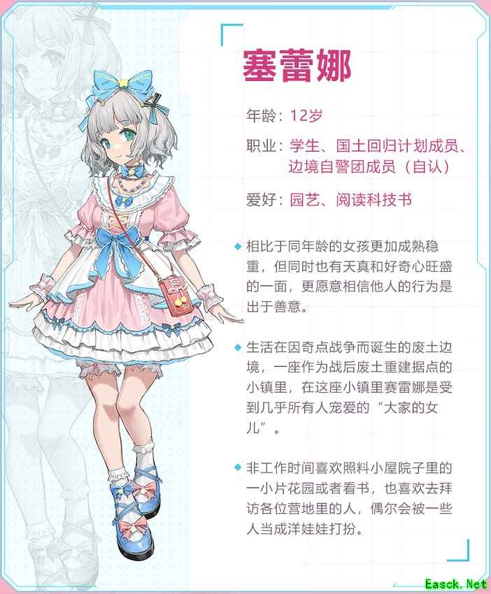 在作为“当地重建计划”据点的边陲小镇,文明边界的卡尔森斯,每当“无人之地”的危险兵器于黑夜蠢动,总会有那一抹洁白现身,于月光下消灭猛兽,又将身影消融于第一缕阳光,正如清晨悠扬的赞美歌声,为人们带来安宁与希望。