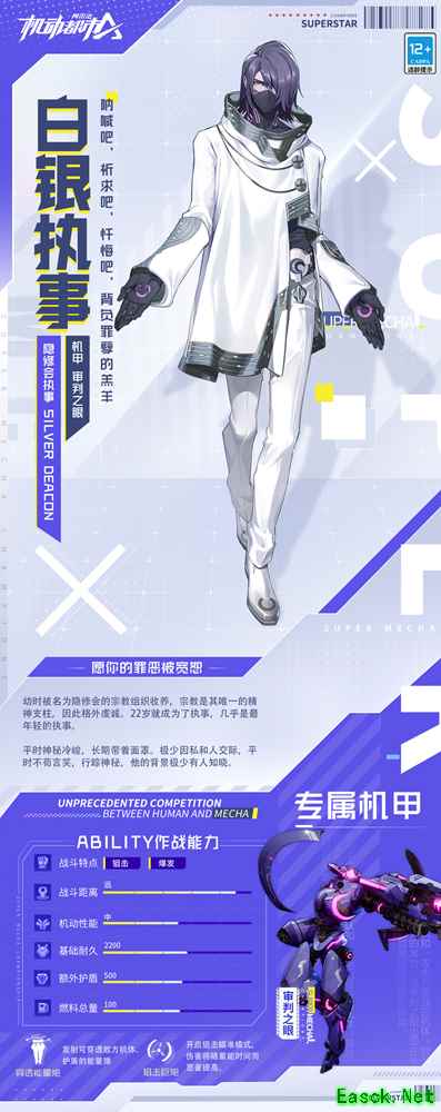 6月24日,机动都市即将迎来全新驾驶员白银执事。他幼年被名为隐修会的宗教组织收养,宗教成为他唯一的精神支柱,22岁,他成为最年轻的隐修会执事。他长期带着面罩,少与人交际,平时不苟言笑,神秘的背景无人知晓。