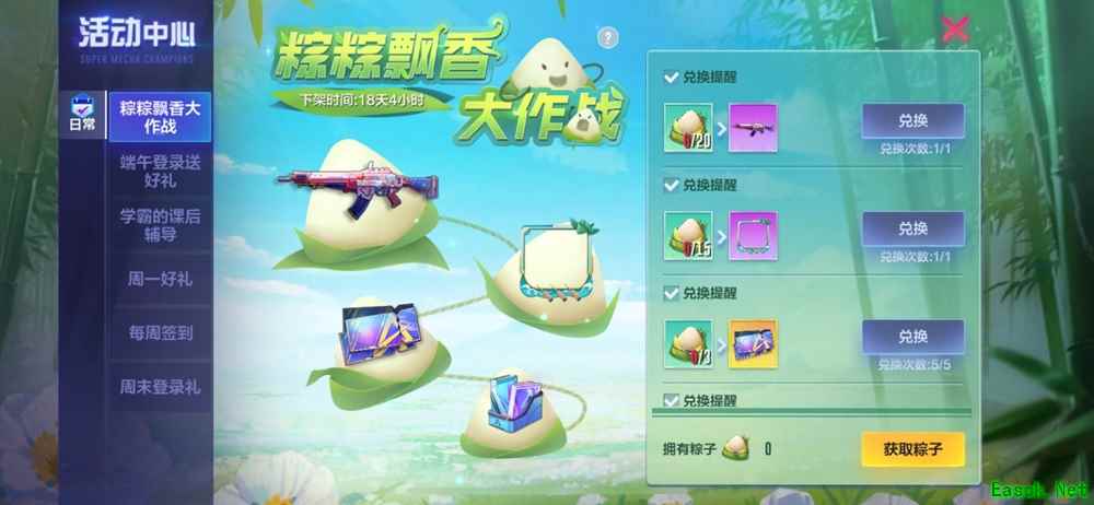 粽粽大作战也开启了!在6月10日-7月1日活动期间,玩家们只需要进入游戏参加战斗、完成任务,就有机会获得关键道具——“粽子”,集齐一定数量即可兑换武器皮肤助你驰骋战场,另外也可以兑换端午专属头像框帮你纪念这美好的节日。