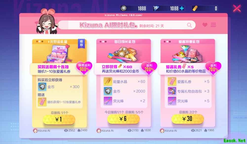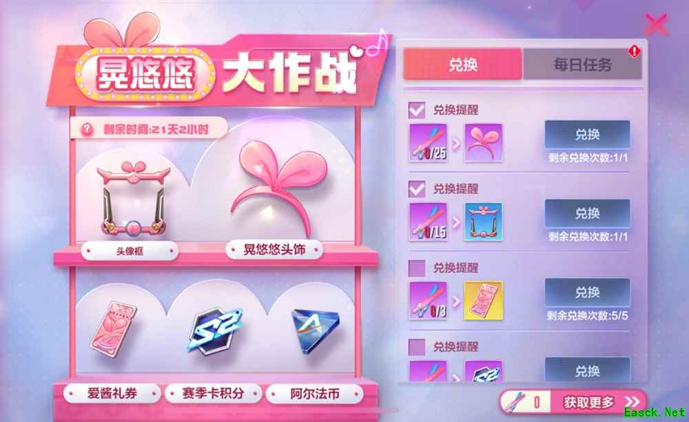 完成每日任务收集荧光棒,即可兑换“晃悠悠头饰”、“头像框·KizunaAI”、“爱酱礼券”等限定奖励;