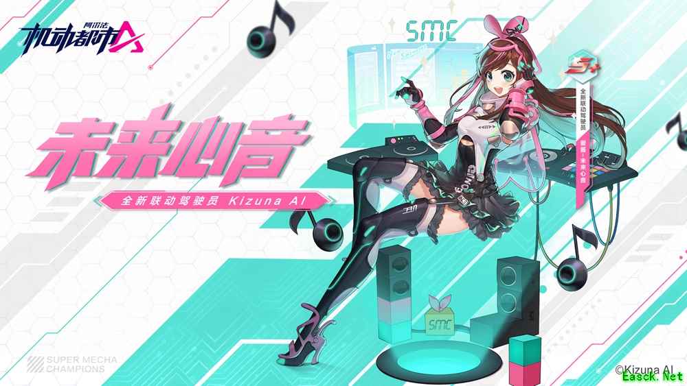 据悉,在本次联动中,玩家们不仅可以看到身穿公式服的爱酱,作为全新联动驾驶员正式登场,额外定制的爱酱驾驶员专属联动S+级皮肤“未来心音”也将同步上线!这套全新的机甲驾驶员作战服,以音乐为设计主题,在干净的黑白配色中融入瞩目的青色光影,整体造型犹如具有未来感的DJ,兼具梦幻与科技感双重魅力。