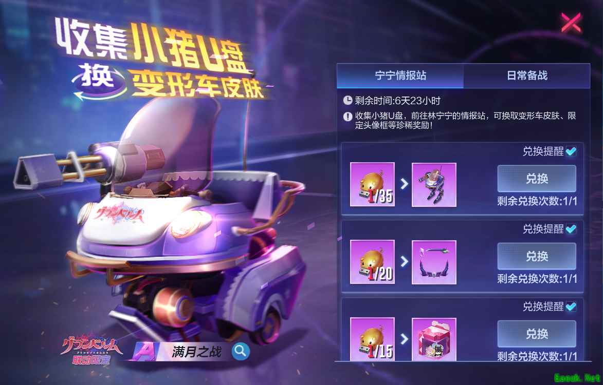 除了新皮肤和新玩法,玩家最关心的联动福利当然也是不能少的。活动期间,累计签到即可获得段位不掉分卡和大量阿尔法币奖励,完成日常备战任务还可获得装满情报的“小猪U盘”,利用小猪U盘即可兑换满月限定变形车、满月表情包、满月头像框、典藏礼券等珍稀奖励。更多惊喜,亟待选手们进入游戏亲自挖掘!