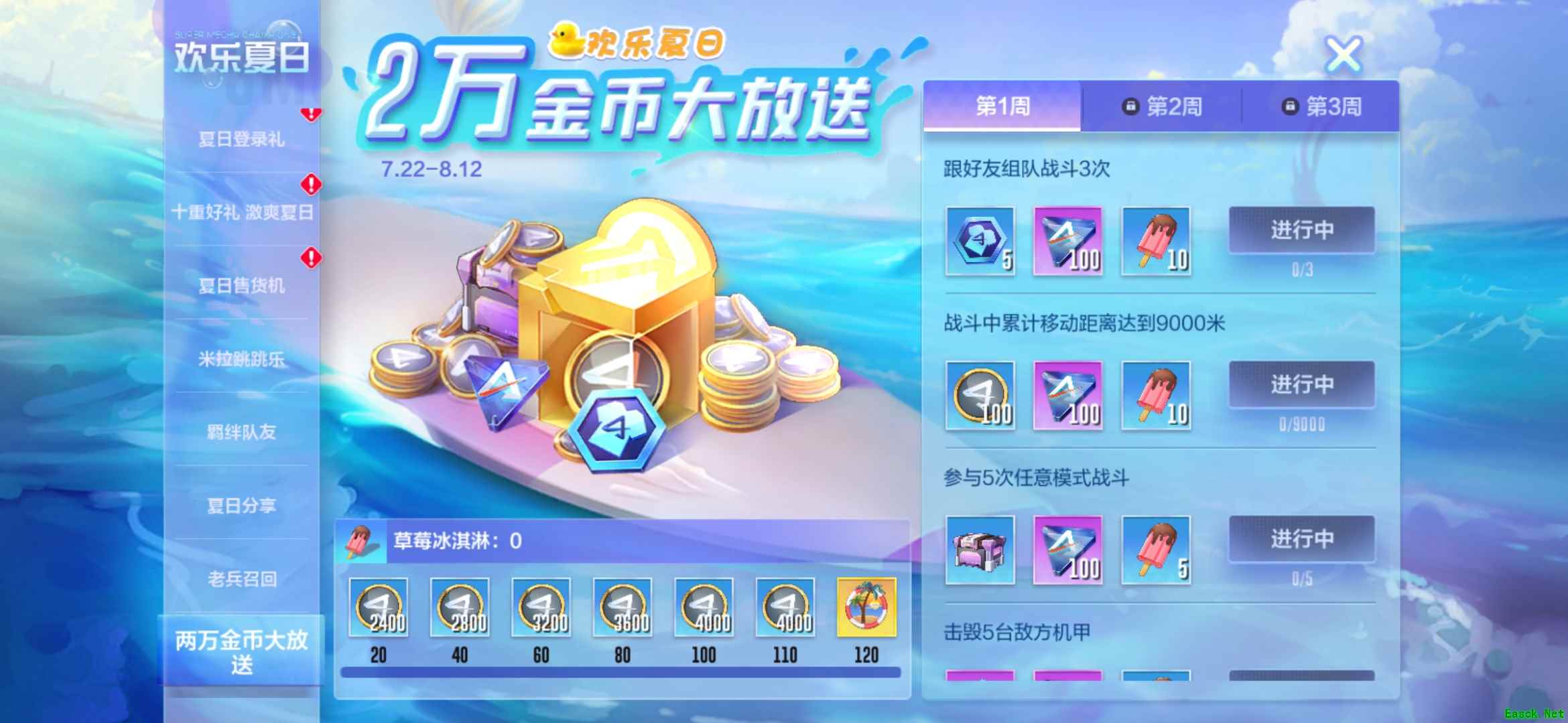 狂欢夏日福利加码,两万金币免费派送
