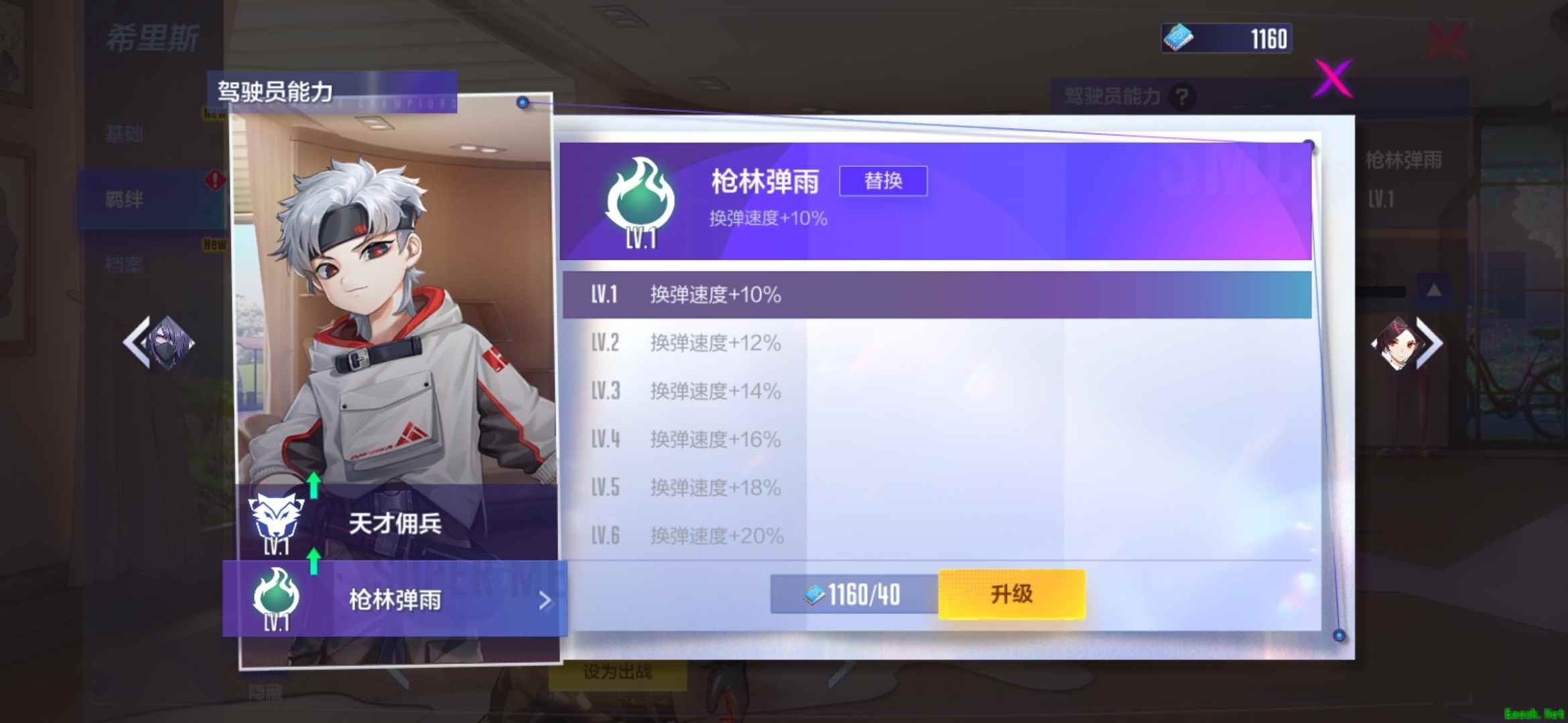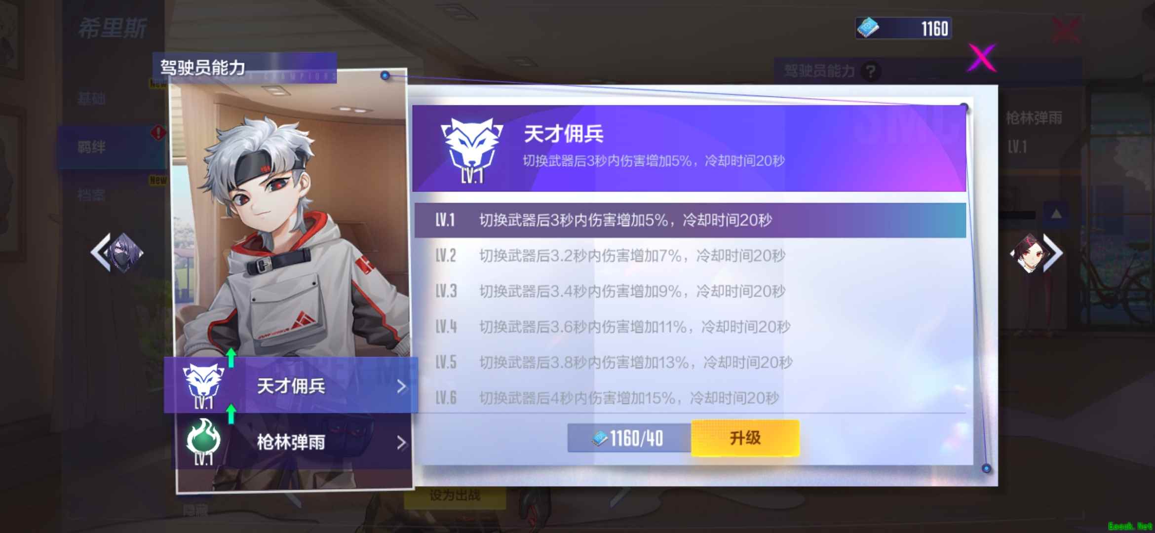 希里斯的人物天赋是天才佣兵,切换武器后3秒-4秒内伤害增加5%-15%,冷却时间20秒;机甲专精是枪林弹雨,可以使机甲的换弹速度增加10%-20%。这两个技能特点与希里斯喜欢重火力的个性十分契合,不愧是枪火主宰者。8月5日前购买希里斯还可获得A级皮肤“橙色信号”!