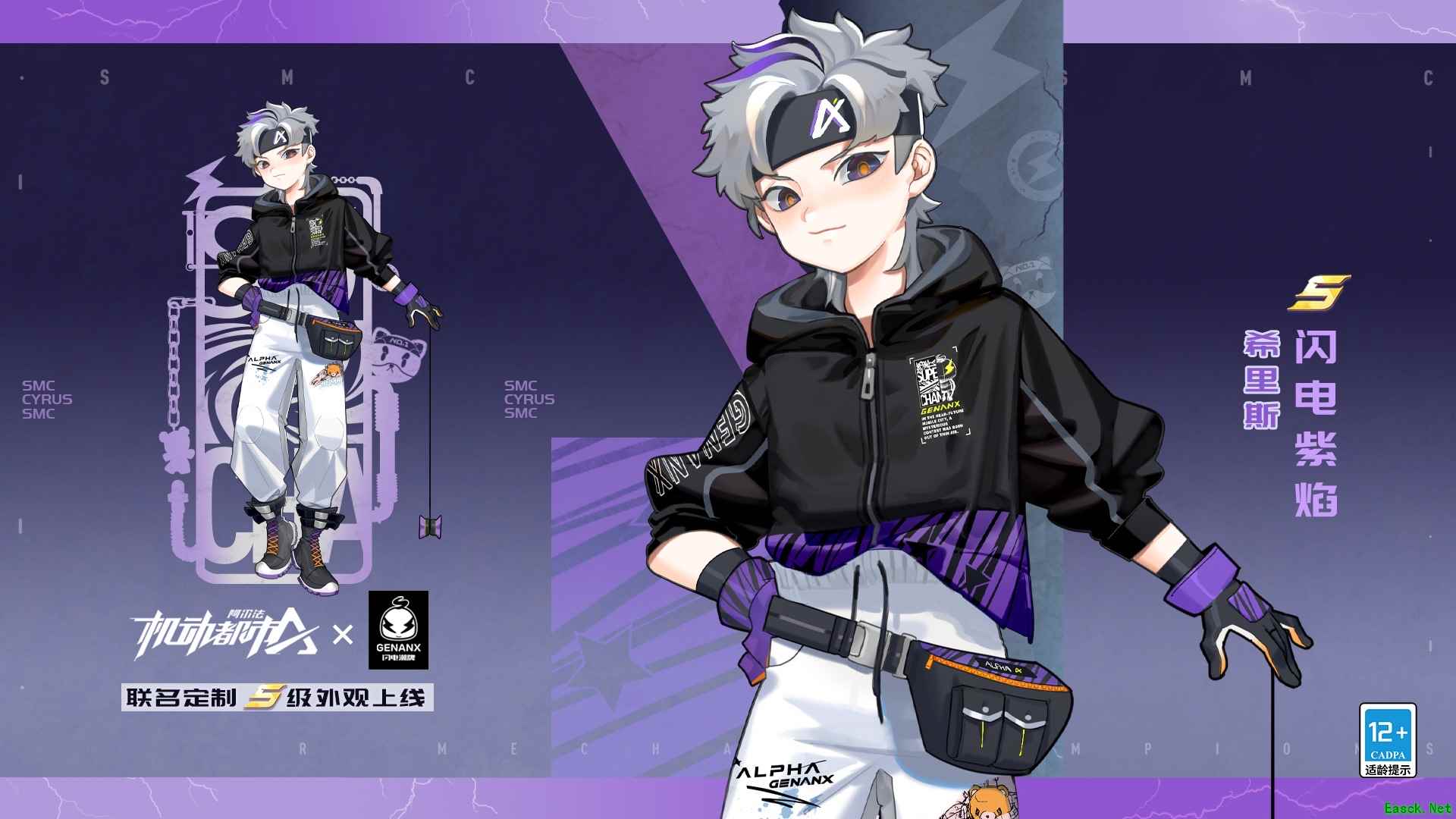 机甲意志,敢勇敢潮!网易游戏人气都市漫画风动作射击游戏《机动都市阿尔法》和原创国潮品牌GENANX闪电潮牌,高能联动第二弹酷炫来袭!S级外观“闪电紫焰”跨圈降临!