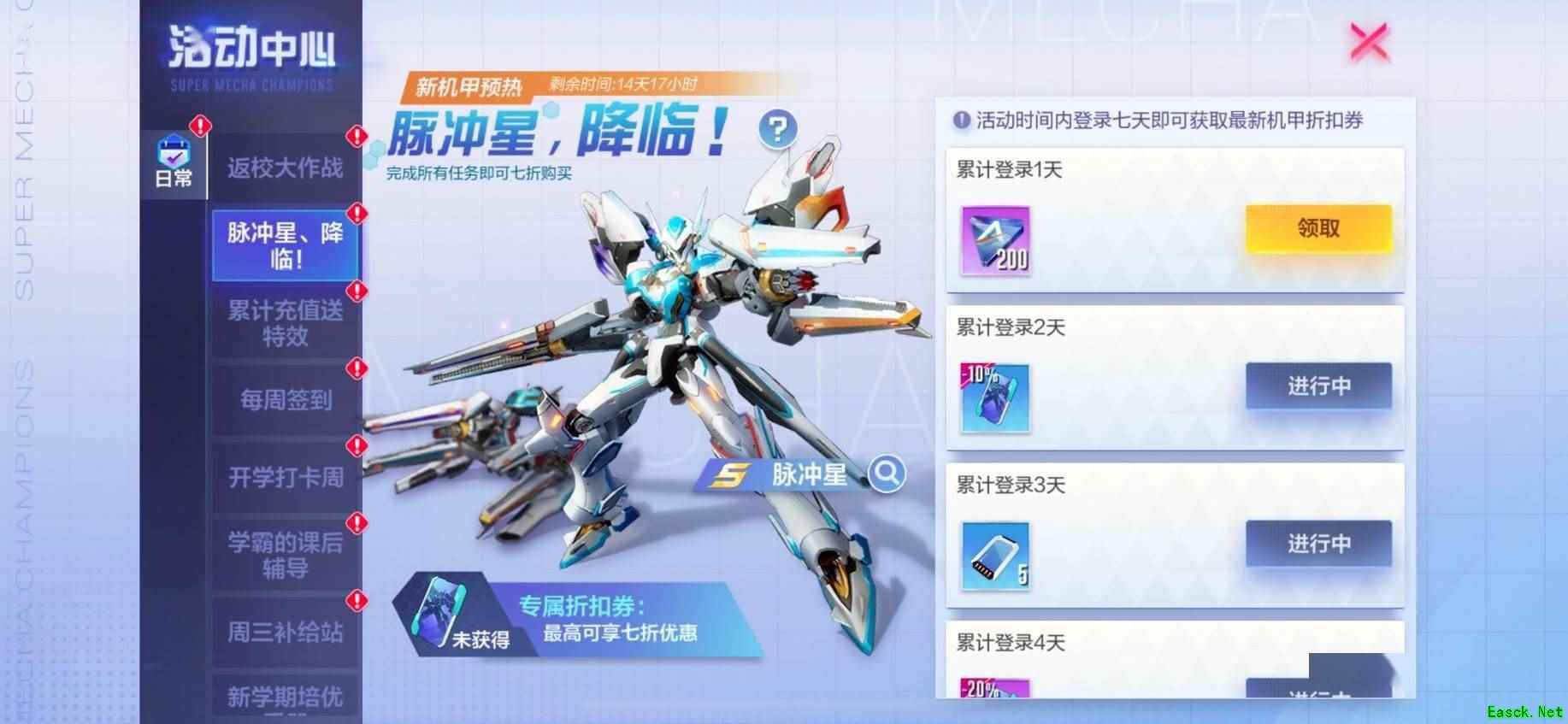 预热活动上线,累计登录领取好礼,最高可获得脉冲星七折购买折扣券!动动指尖参与活动,变革的脉冲,入你囊中!