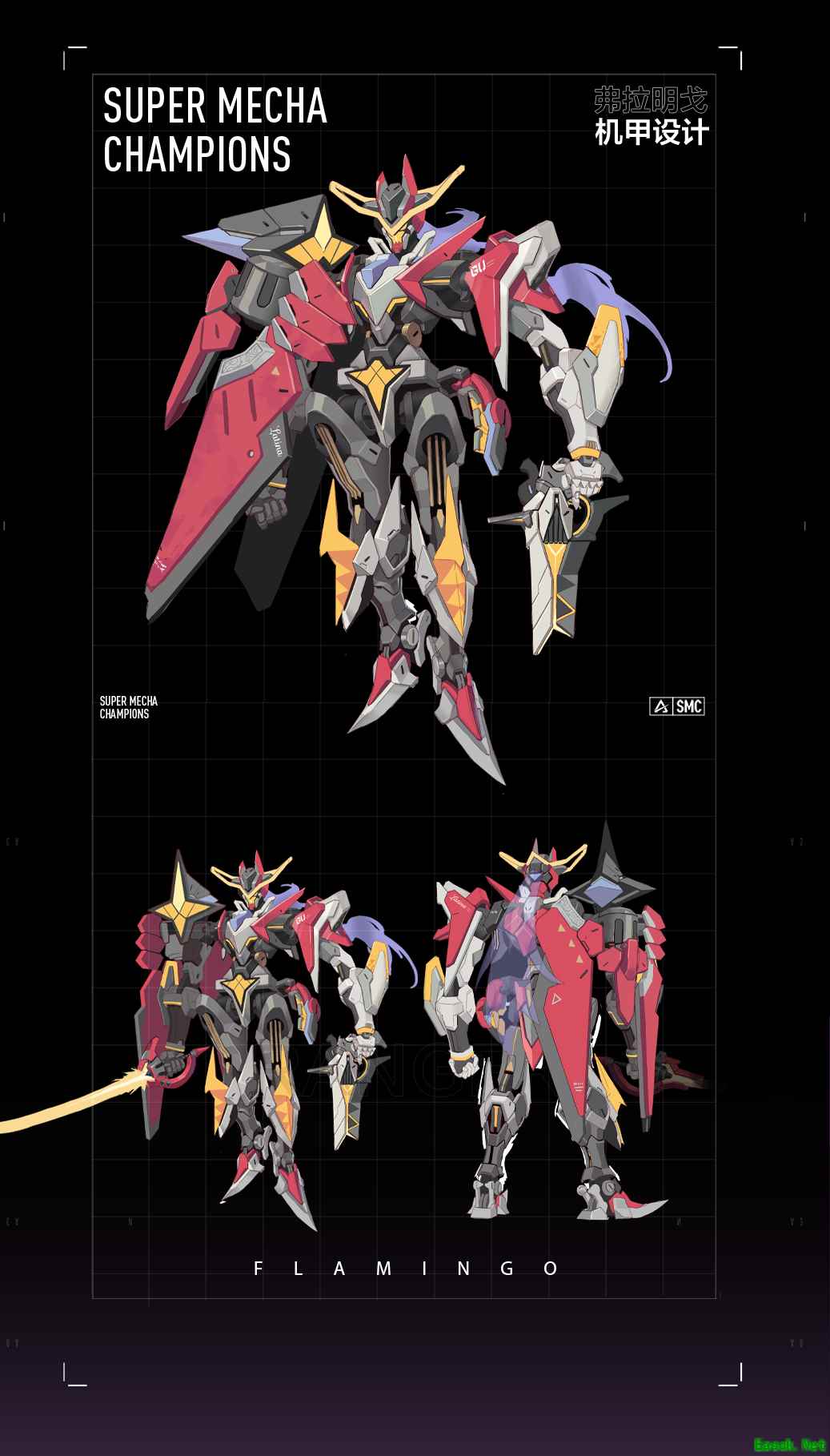 作为歌剧的主演之一,“弗拉明戈”被换上了更鲜艳的涂装和更精致的装饰。为了能够复现剧本中描述的“威力能将打底融毁”的跳劈动作,“十字星”娱乐公司还调整了“弗拉明戈”的运动系统,为其装配了动力更为强劲的高频脉冲发射器,使其能够瞬时喷出高热气流,产生爆发式的推进力。