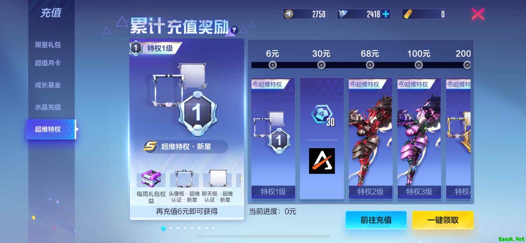 充值福利充全新升级成为超维特权系统,在原有奖励不变的基础上,额外新增超维特权福利,如聊天文本变色,ID变色,专属徽章,组队金币加成等权益,更有全新专属入场特效,超人气机甲亚瑟S+级外观“暗宵忍魁”可以解锁。