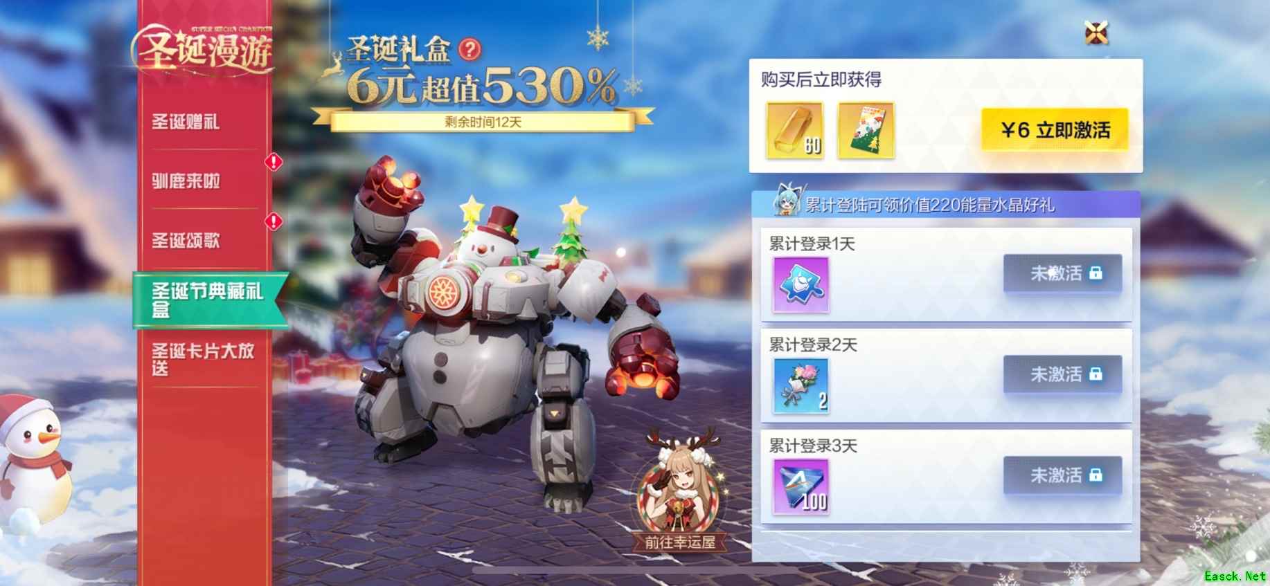 除了圣诞主题皮肤,游戏内还上架了“圣诞典藏礼盒”,玩家激活后就能立刻领取能量水晶及圣诞幸运礼券,并可开启七天登陆特权好礼。此外,圣诞活动期间,玩家累计充值还可获赠圣诞节专属入场特效和击杀特效等多重好礼。