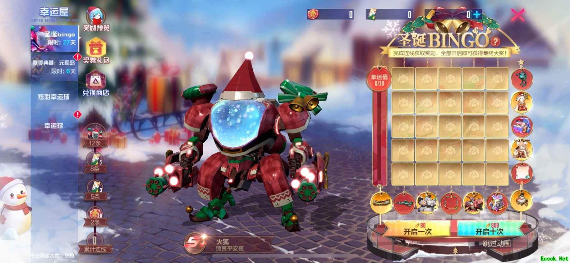 人气机甲火狐也换上了节日新装。驾驶舱里面,犹如一个圣诞主题的水晶球,将整个雪夜的浪漫风景,封存其中;大红色的圣诞帽,不止可爱,更是温暖的期待;肩膀上的圣诞铃铛,听到它就代表着惊喜的来临。