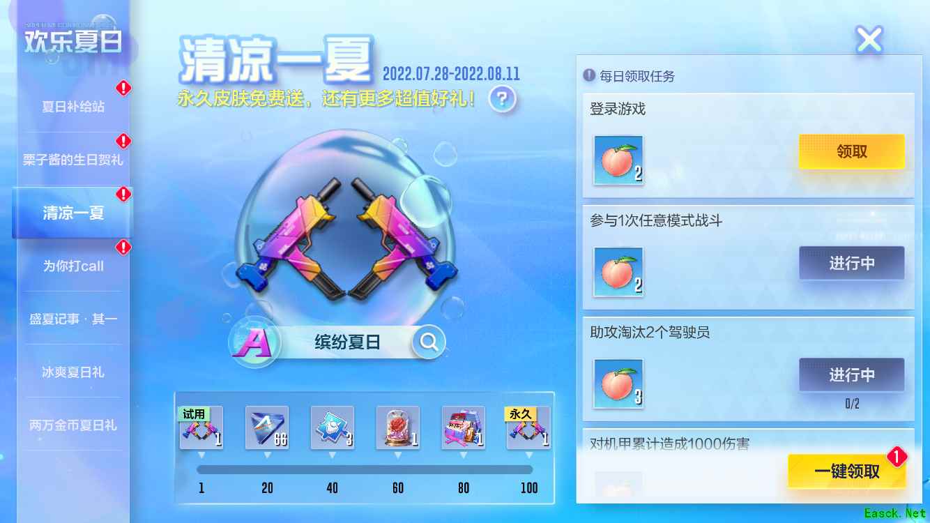 7月28日至8月11日期间,完成相关任务收集活动道具,最高可领微型冲锋枪外观“缤纷夏日”,还有更多好礼等你来拿!