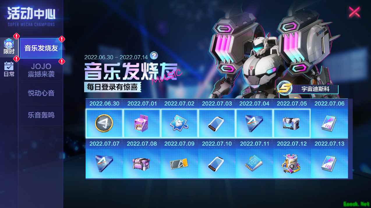 新机甲即将上线,累计登录领好礼,最高可获得JOJO七折购买折扣券!
