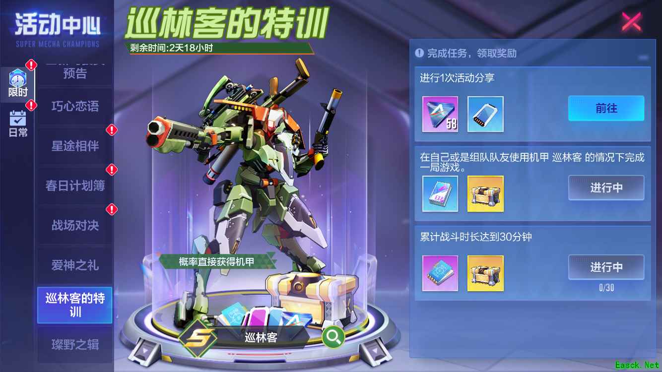 完成任务即领机甲上新礼盒,概率直接获得新机甲巡林客!