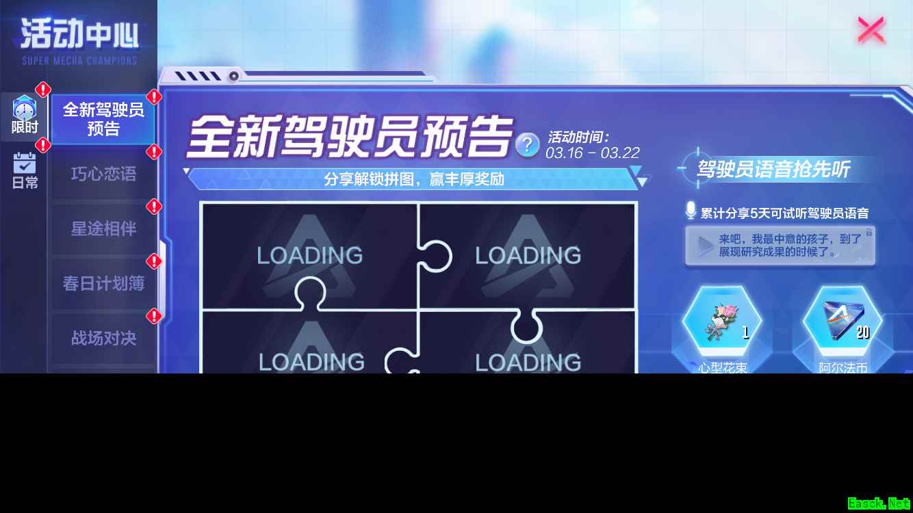 全新驾驶员即将上线,分享解锁拼图领取丰厚奖励,累计分享5天即可试听驾驶员语音