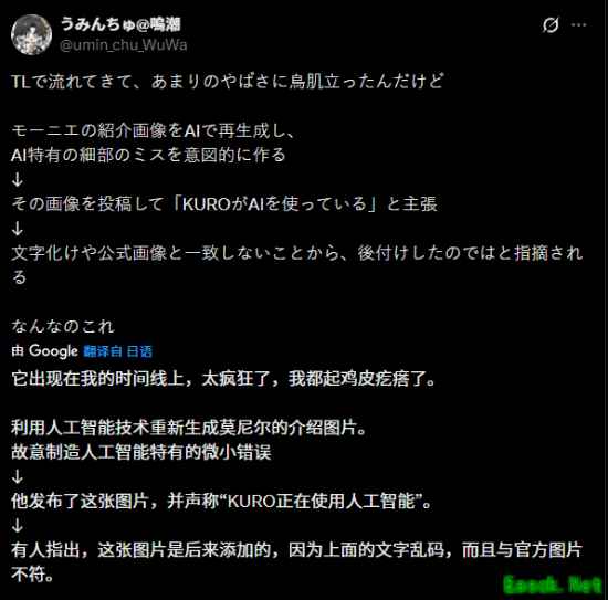 库洛旗下开放世界RPG《鸣潮》近日在海外陷入一场舆论风波。一名国外网友将游戏新角色“莫宁”的官方立绘通过AI工具重绘后,上传至AI检测网站,得出“89%可能为AI生成”的结论,并配文“这对库洛来说可不妙啊……”暗示官方使用AI作画。该帖经海外社区扩散后引发哗然。