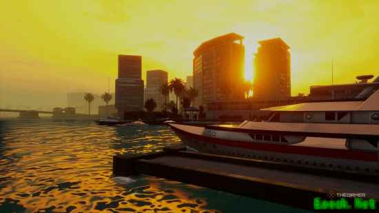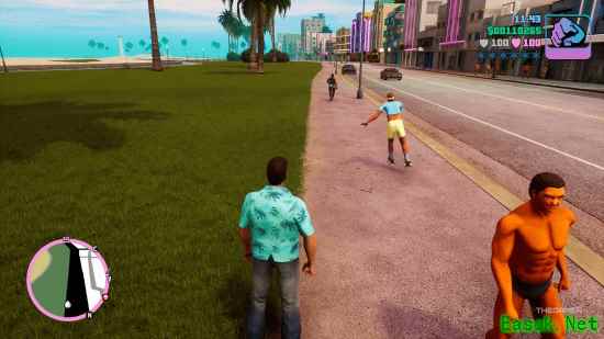 当你想到《GTA 4》中的自由城(Liberty City)时,脑海中浮现的会是昏暗、沉闷的色调。但《罪恶都市》则完全不同,这座城市充满了色彩。城里有许多色彩各异的建筑,还有大量鲜艳的霓虹灯光。此外,游戏中海洋与河流那醒目的蓝色也令人印象深刻,海滩的视觉效果也十分舒适。