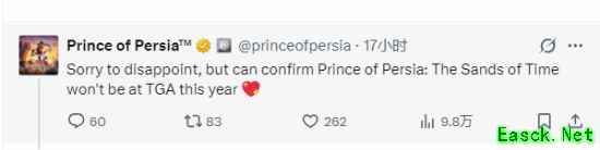 日前,《波斯王子》官方确认:“《时之砂重制版》今年不会出现在TGA活动中。”虽然令人失望,但育碧仍有希望携另一款重制游戏亮相TGA。