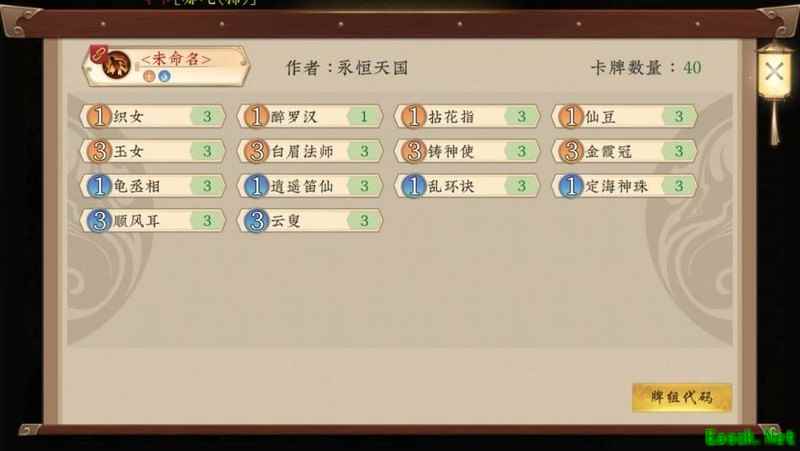 先用麻姑、金冠霞和仙豆稳住局面,随后以拈花指、乱环诀、顺风耳等手段消耗对手牌库,直至其无牌可出。