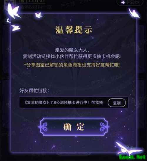 6月23日至7月7日活动期间,各位魔女大人进入活动页面,每天登录即可免费获得3次十连抽的机会。除此之外,玩家还可将活动海报或活动链接发给好友帮忙,每次被帮忙成功可获得一次10连抽的机会。注意,每位玩家只能找同一个好友帮忙1次哦!