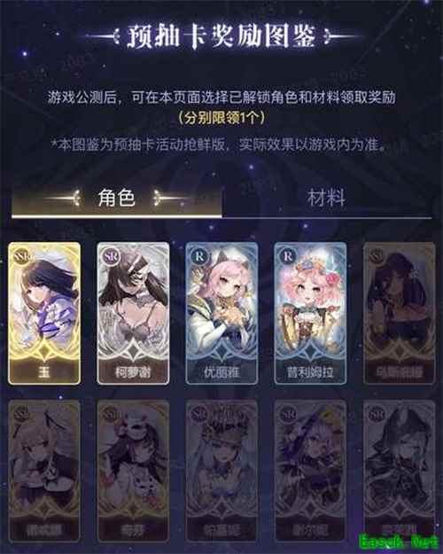 在7月8日公测开启后,将会开放领奖功能,玩家登录后可在【预抽卡奖励图鉴】中手动选择1个已点亮和角色和1种已解锁的材料。