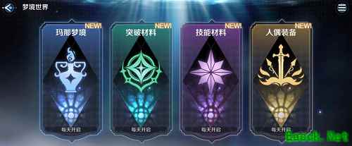在《复苏的魔女》中,梦境世界是各位魔女大人收集各类升级材料的不二选择。梦境世界分为「玛那梦境」、「突破材料」、「技能材料」、「人偶装备」四个副本,副本每天开启,魔女大人进入不同的副本赢得战斗会获得各种不同的材料。