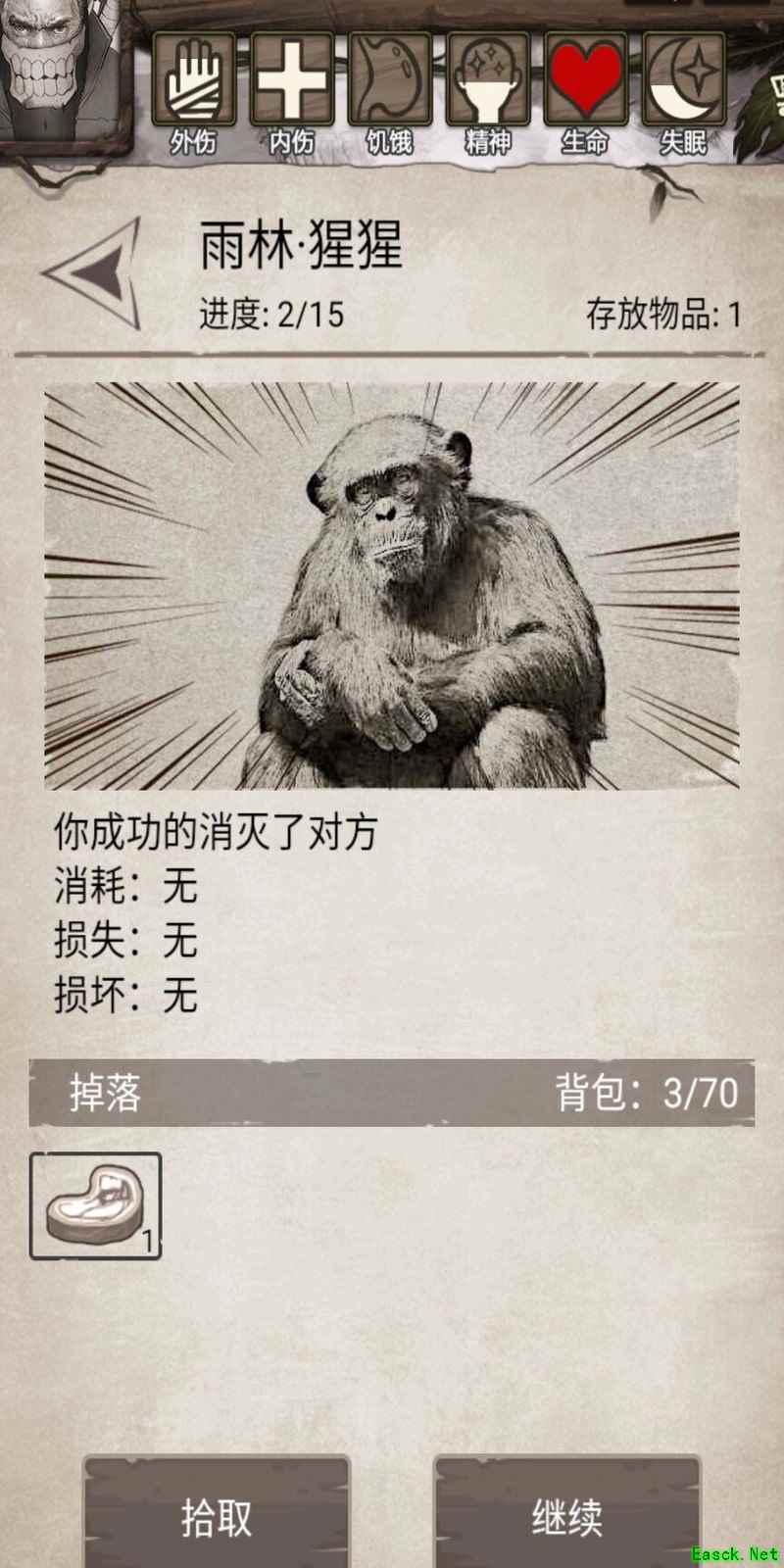 智斗获胜后,每日睡觉即可获取木材,若青草膏充足,也可前往沉船区域探索。遭遇怪物时精神值为空可直接逃跑,多数情况下不会掉血。夜袭无需建造栅栏,其成功主要取决于入睡时间。资源可存放于背包中,淡水台最多可放置12份淡水。打通雨林后通常能建造高级栅栏,因此这方面压力不大。
