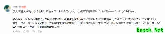 下方评论区还有玩家“认真”分析了五行大学这个名字后表示,这大学更偏向民办本科或民办大专,大概率不属于985、211或双非一本/二本(公办院校)!