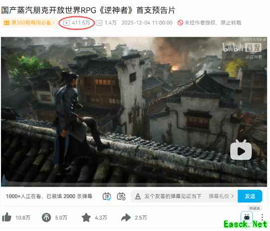 截至发稿前,游戏在B站首支预告播放量已突破400万!
