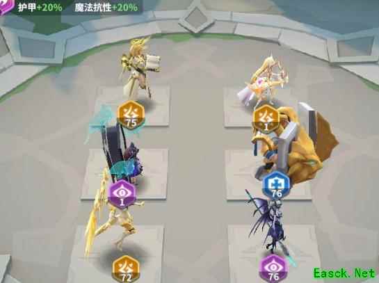 后排配置:黎明之光、炽天使与千魂魔女(堕夜精灵),三光两暗组合可获得20%加成效果。
