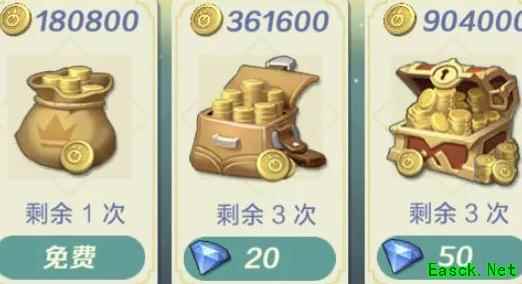 礼包包含:钻石200、普通探宝券5张、金币5万。